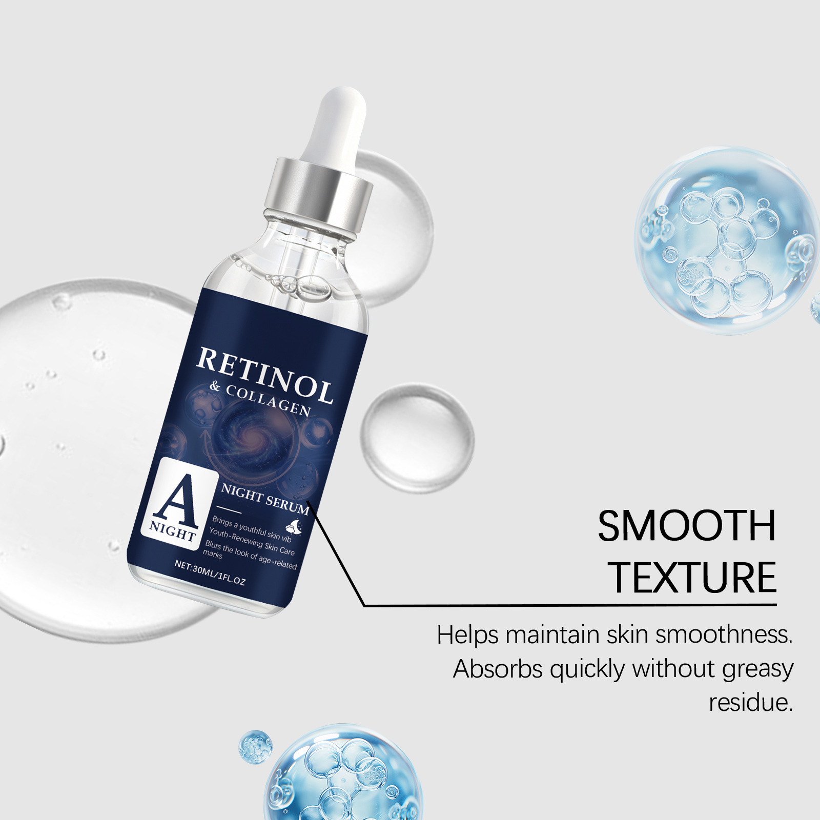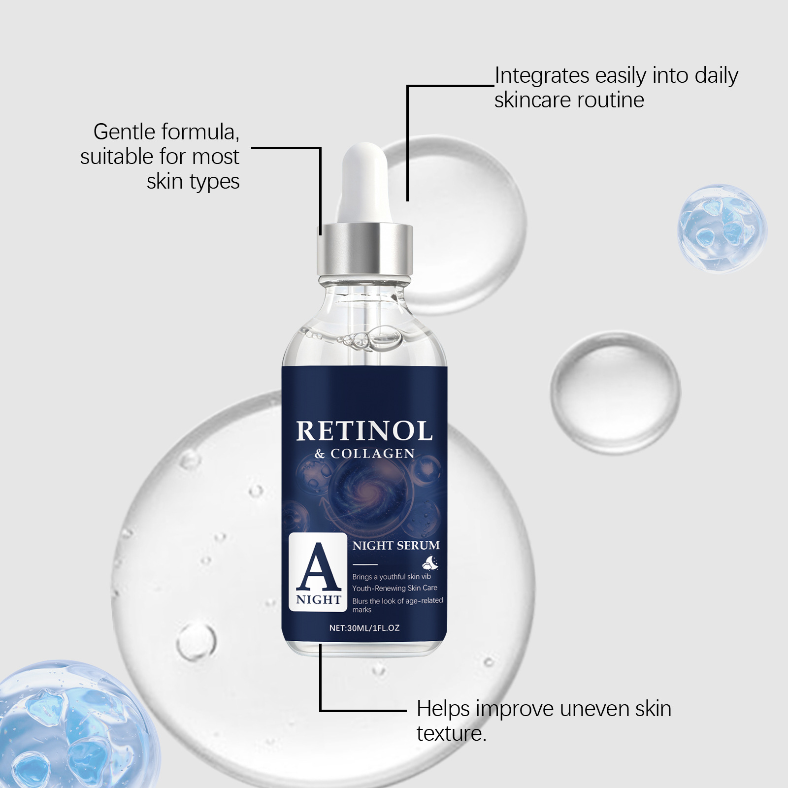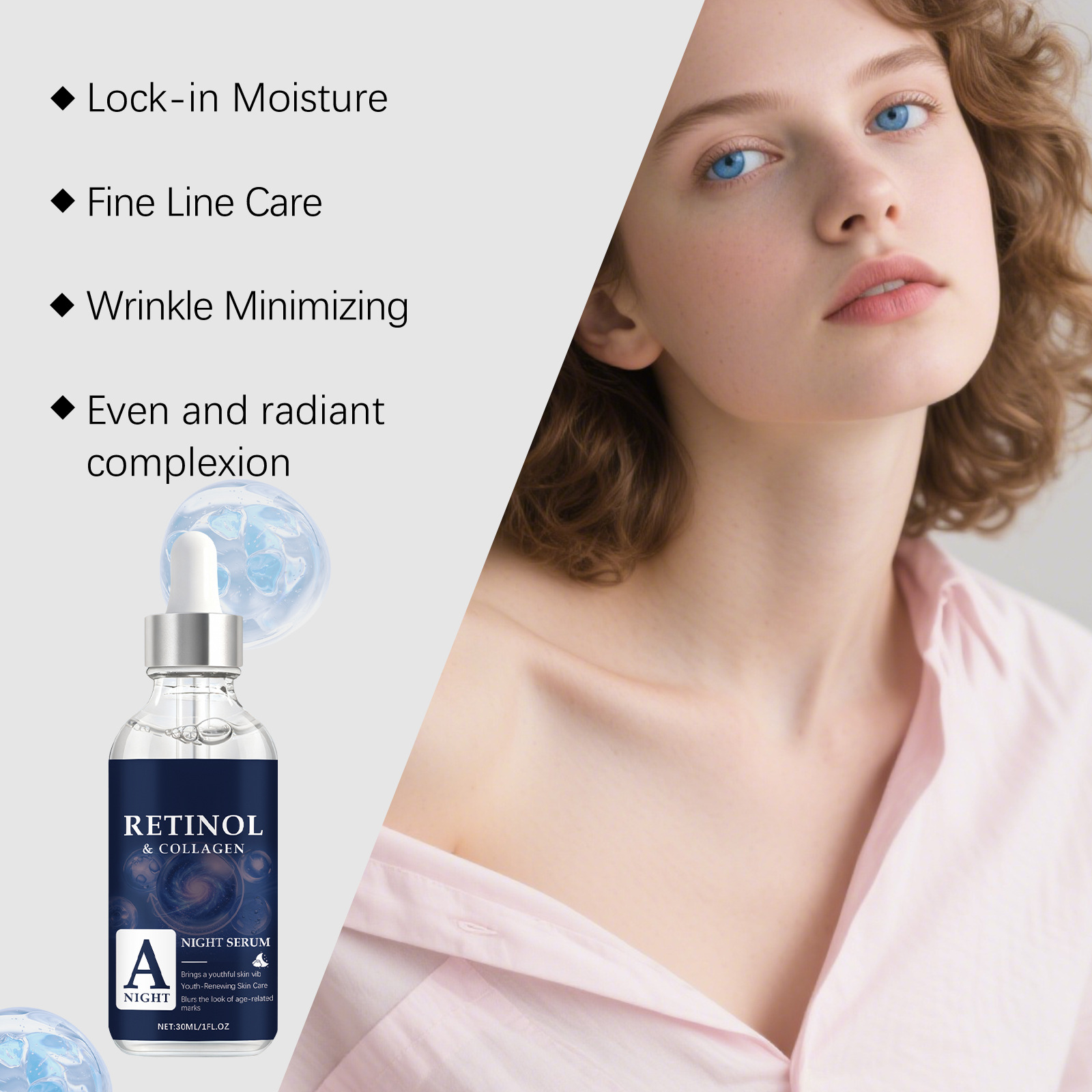 Ingredients: water, glycerin, 1,2- hexanediol, carbomer, arginine, retinol, hydrolyzed collagen.