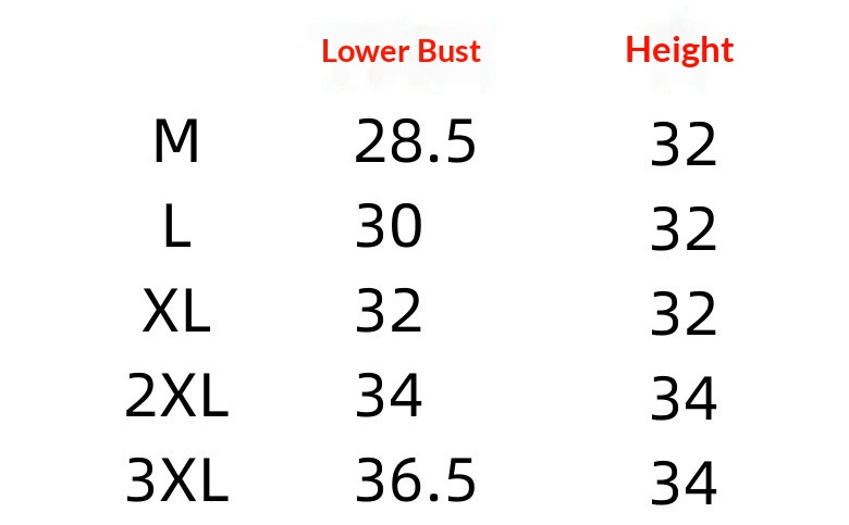 Size : M [for 34/75bcd], l [for 36/80bcd], XL [for 38/85bcd], 2xl [for 40/90bcd], 3xl [for 42/95BCD]