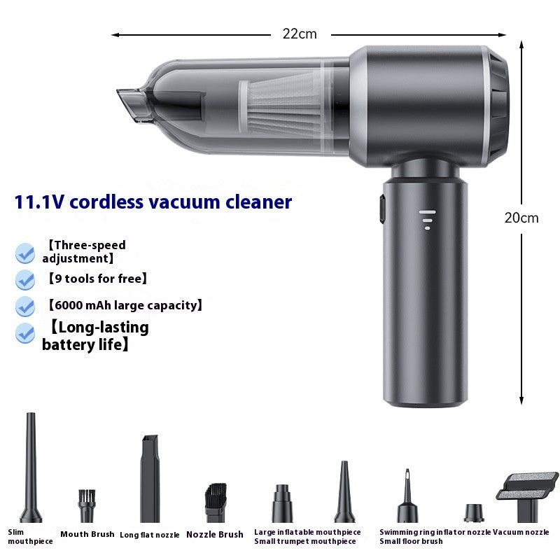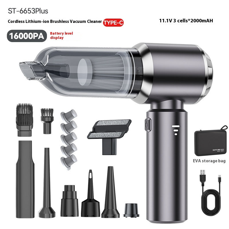 Farbklassifizierung: Bürstenloser Motor, dritter Gang, einstellbarer Riemen, Leistungsanzeige/11,1-V-Pistole, Schwarz/Typ-C-Ladeanschluss * 15000 Pa/EVA-Aufbewahrungstasche, 5 Filter