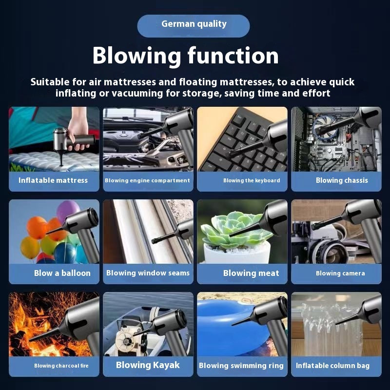 Hauptgerät, Bedienungsanleitung (1 Stück), USB-C-Ladekabel (1 Stück), Saugdüse (1 Stück), Bürste (1 Stück), kleine Bürste (1 Stück), Blasdüse (2 Stück), Abluftdüse (1 Stück)