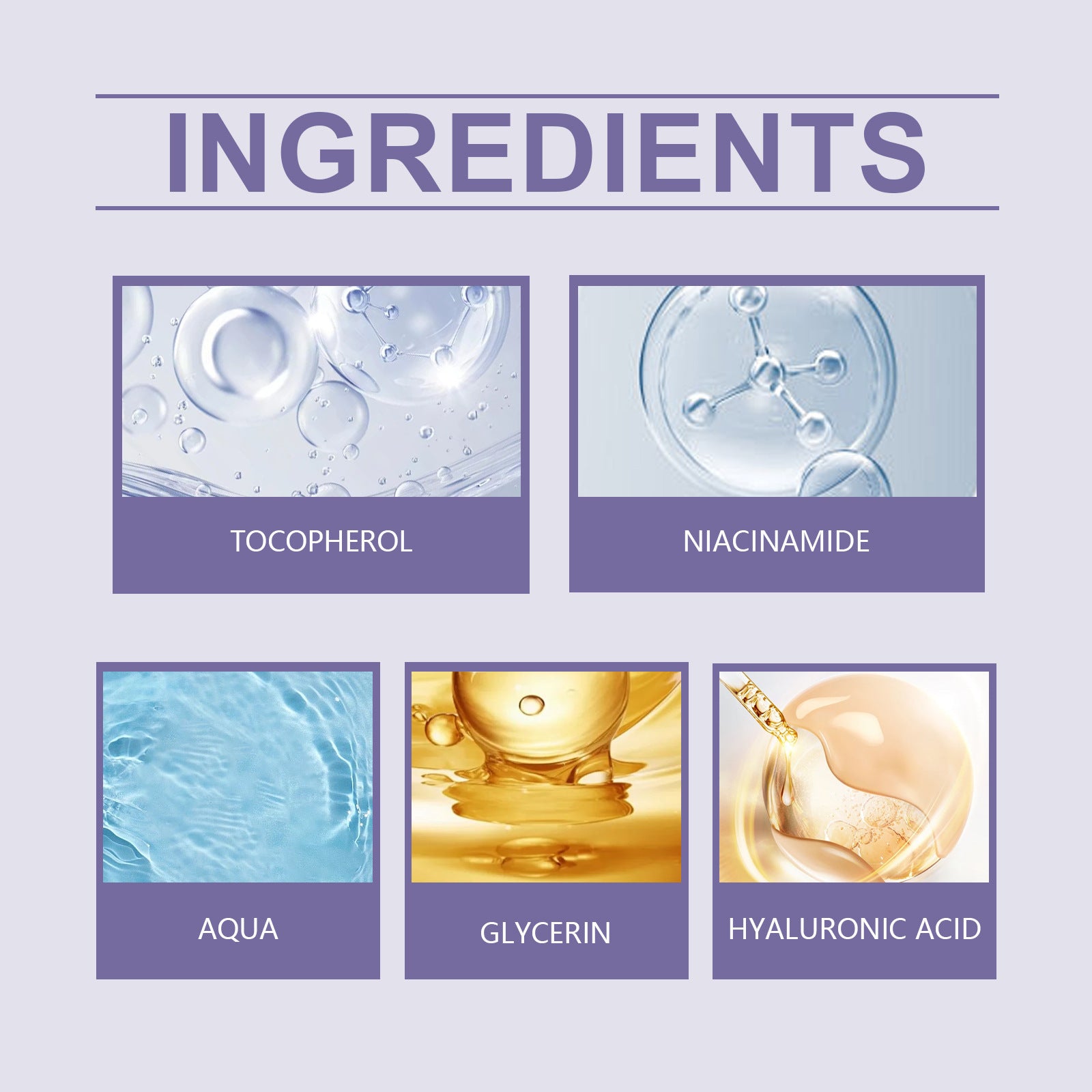 Inhaltsstoffe: Wasser, Nicotinamid, Tocopherol (Vitamin E), Glycerin, Hyaluronsäure