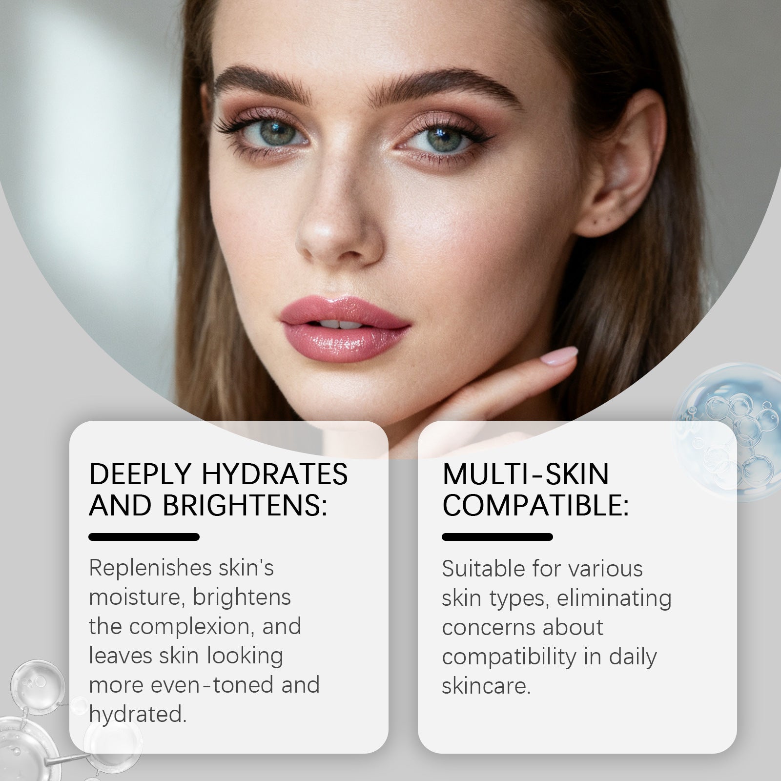 Zutaten: Wasser, Glycerin, 1,2-Hexandiol, Carbomer, Arginin, Allantoin, Ascorbinsäure (Vitamin C), Hyaluronsäure, Nicotinamid, Tocopherol (Vitamin E) und hydrolysiertes Kollagen.