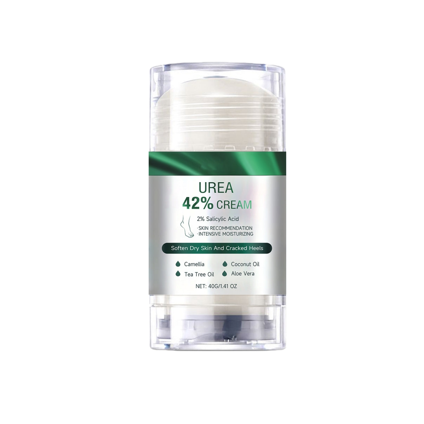 Inhaltsstoffe: Mineralöl, Bienenwachs, Vaseline, 1,2-Hexandiol, Kamelienextrakt, Kokosnussöl, Teeöl, Aloe-vera-Extrakt, Harnstoff, Salicylsäure.