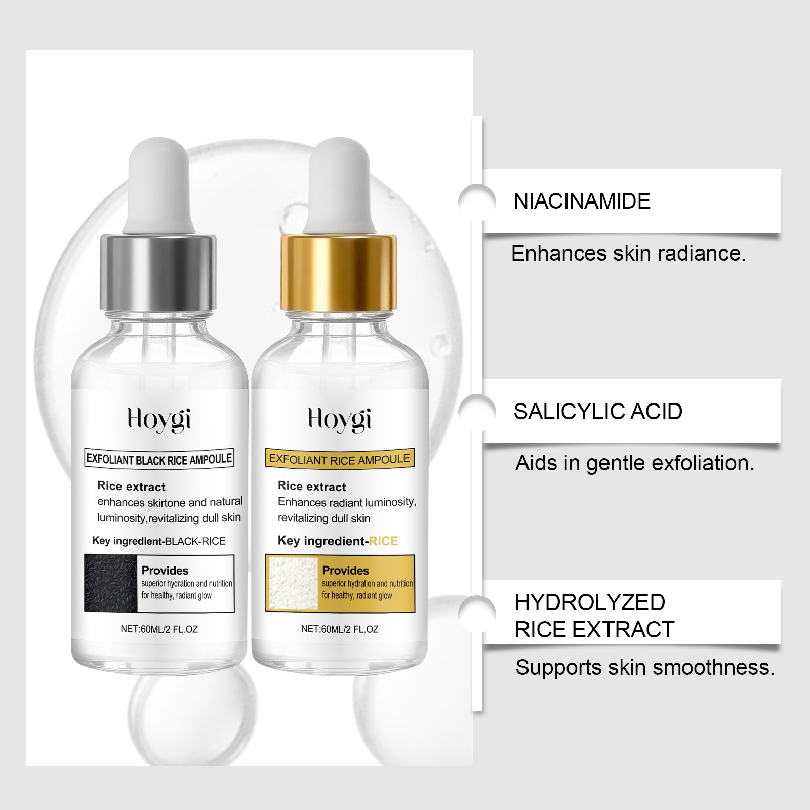 Farbvarianten: Aufhellendes Peeling-Serum mit Reis, Aufhellendes Peeling-Serum mit schwarzem Reis