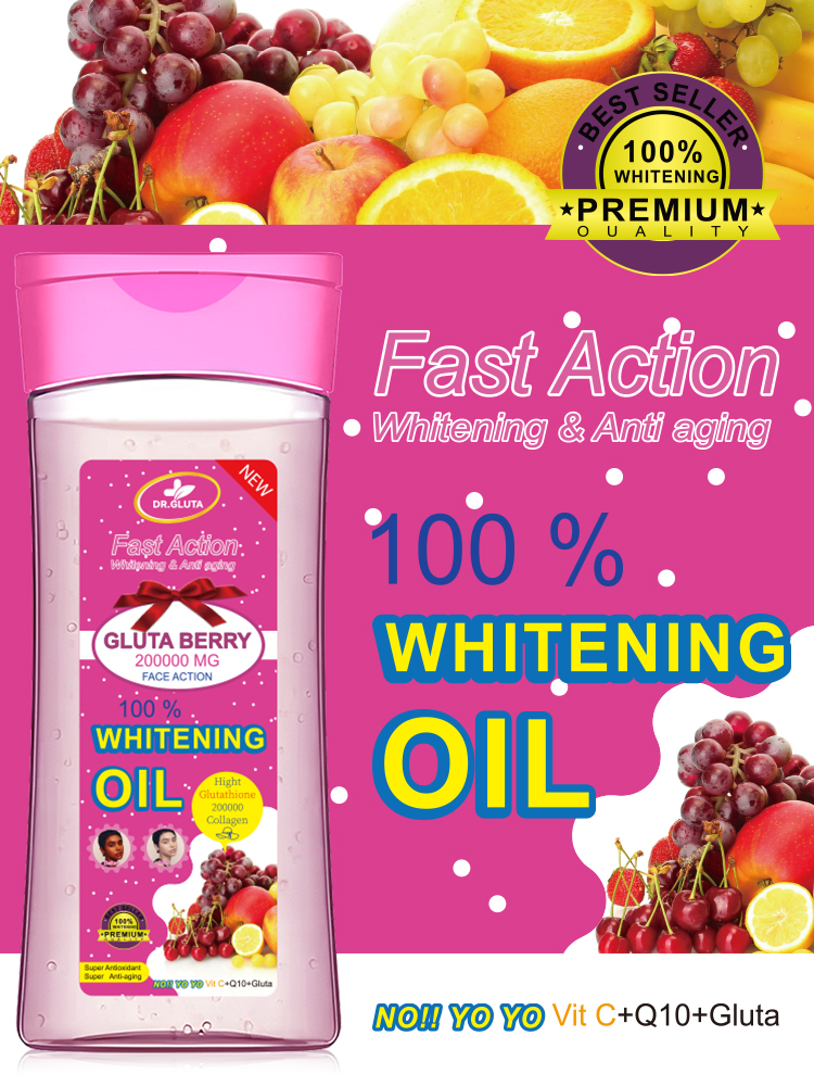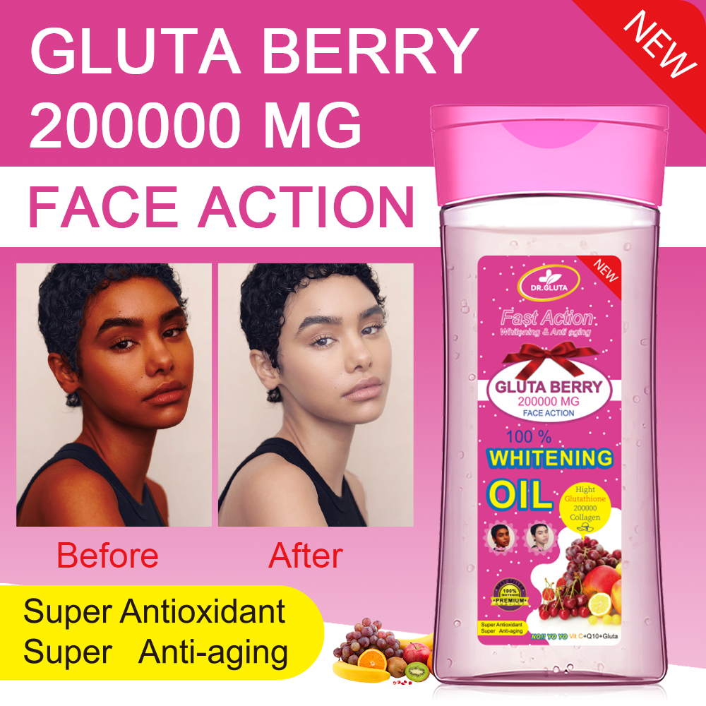 Glutathion-Aufhellungsöl, schnell wirkendes Aufhellungs- und Anti-Aging-Körperöl mit Frucht-Beeren-Kollagen, Hautpflege, 200 ml