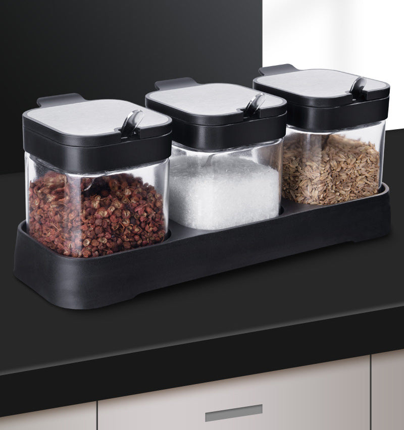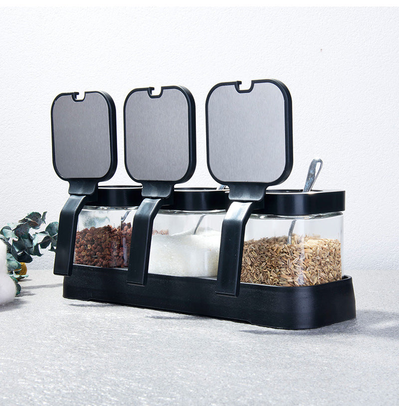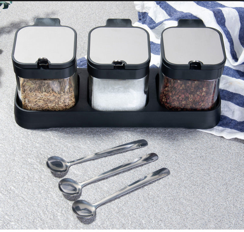 Produktname: Gewürzglas aus Glas mit Tablett, Gewürzglas mit Edelstahllöffel