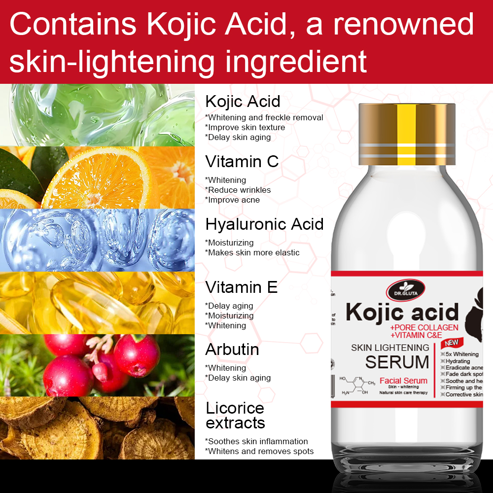 Kojisäure-Serum zur Hautaufhellung. Enthält Kojisäure. Für ungleichmäßigen Hautton und fahle Haut. Natürliches Hautpflege-Gesichtsserum.