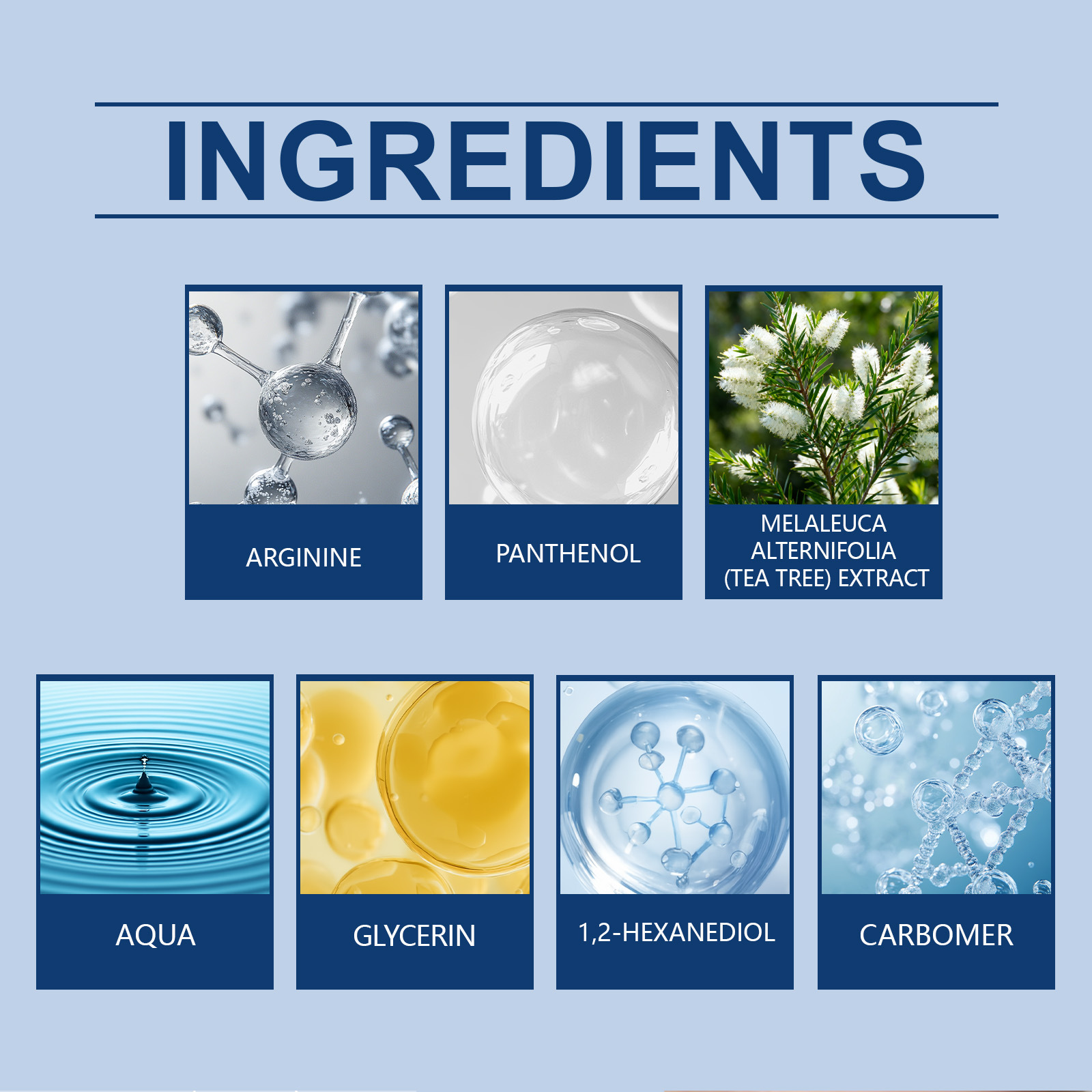 Inaktive Inhaltsstoffe: Wasser, Glycerin, 1,2-Hexandiol, Carbomer, Arginin.