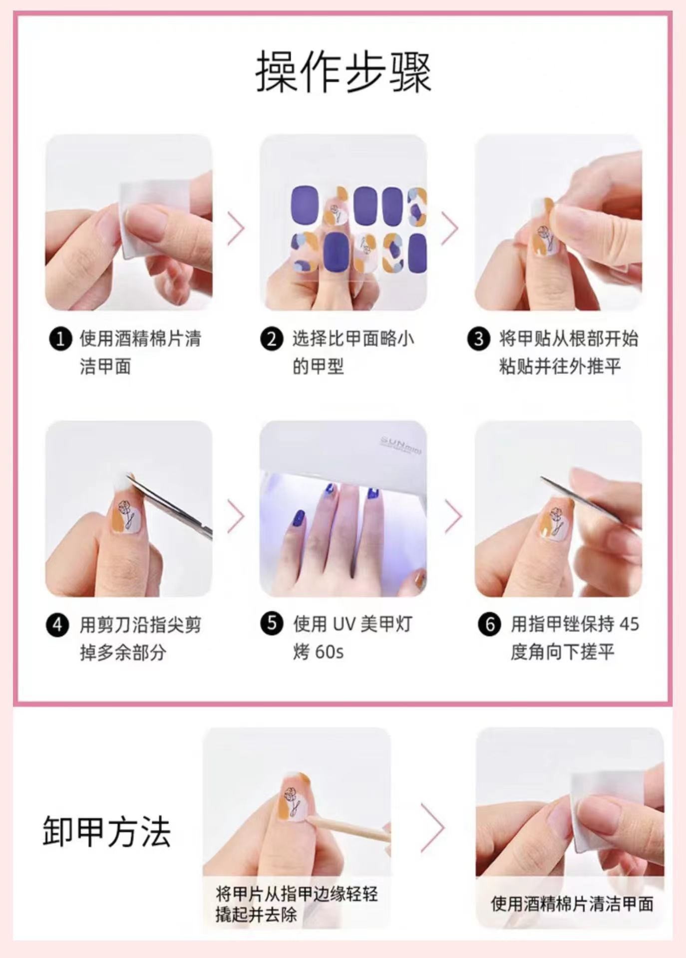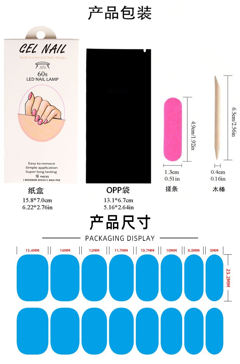 Nagelsticker + Werkzeugset + Holzstäbchen + Nagelfeile + Alkoholtupfer