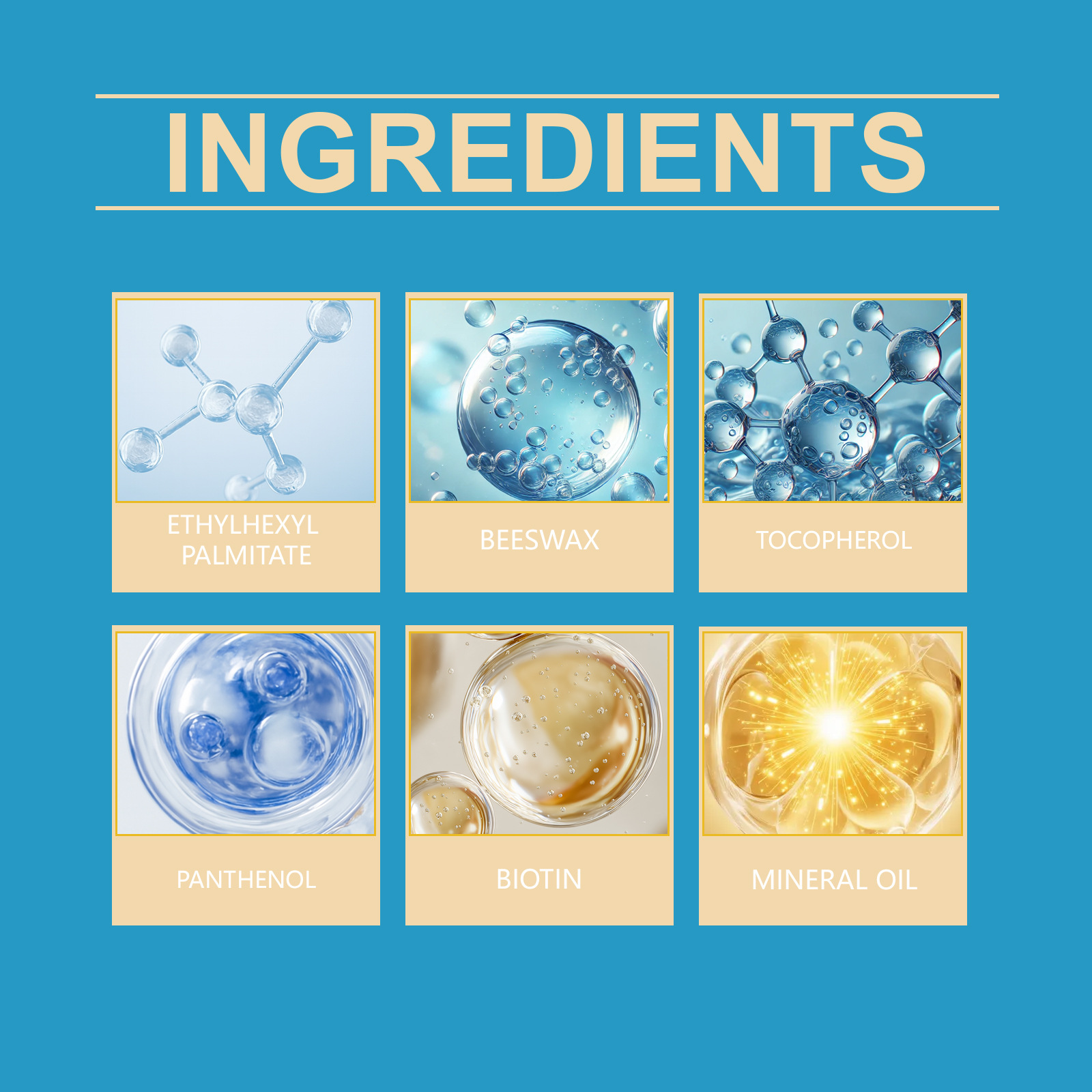 Inaktive Inhaltsstoffe: Mineralöl, Ethylhexylpalmitat, Bienenwachs, Tocopherol (Vitamin E).